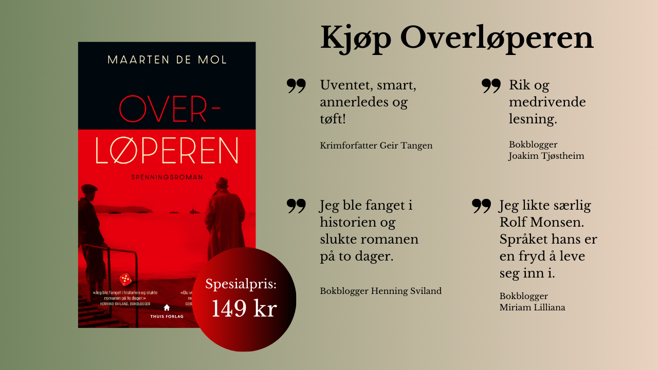 Du får pocketutgaven av Overløperen til bare 149 kroner! Dette inkluderer gratis frakt. Vil du heller ha innbundet utgave, kan du bestille det her.